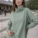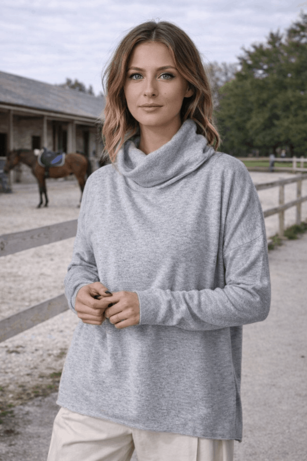 Col et bas du pull finition rouloté. Bas des manches fines côtes.