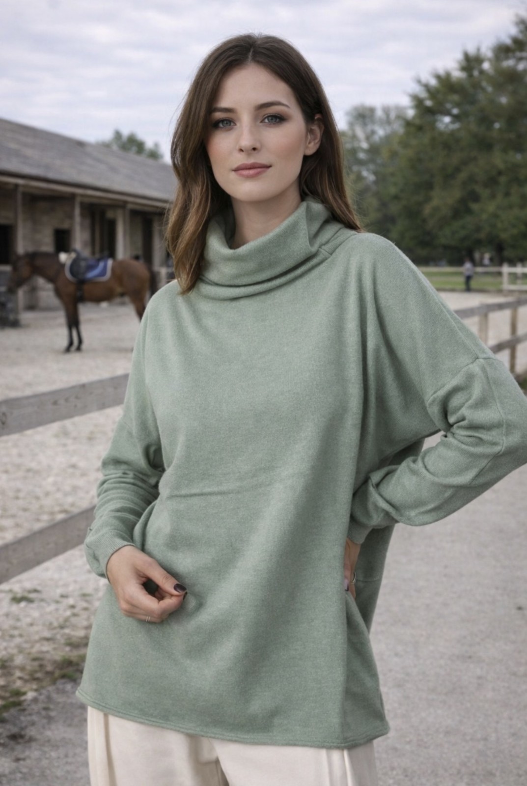 Notre mannequin porte un pull taille Médium.